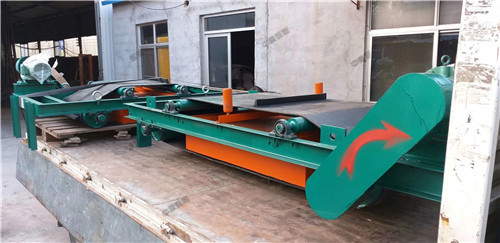 當顆粒狀物料經(jīng)過永磁自卸除鐵器的正下方時,混雜在物料中的鐵磁性雜質(zhì)大約0.1—0.36公斤被吸起,由于除鐵器上的皮帶不停的運轉(zhuǎn),當吸附在上面的鐵磁性物料經(jīng)過無磁區(qū)時,便被皮帶上的鐵件刮出,扔進集鐵箱,從而達到連續(xù)自動除鐵的目的。