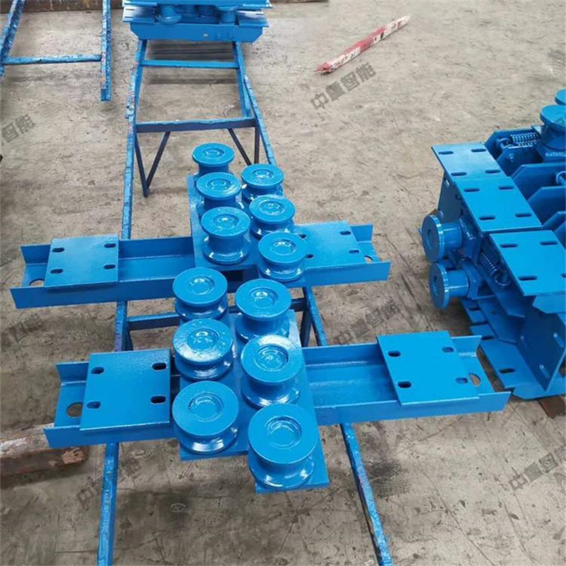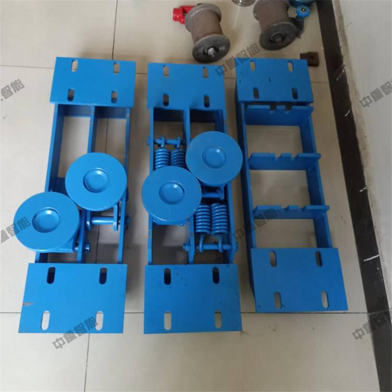 壓繩輪組用壓板固定在軌道的下沿上。一般在下列地點考慮安裝壓繩輪:①在水平彎道的前后,當(dāng)彎道處的位臵較低時。②在巷道的下凹變坡點,當(dāng)變坡角較大時,主壓繩輪組應(yīng)保證安裝數(shù)量,否則發(fā)生跳繩現(xiàn)象。③當(dāng)鋼絲繩偏離軌道中心較多時。平托輪組用壓板固定在鋼軌的下沿上。在平道或坡道上每隔一定的間距安裝托繩輪組,在軌道的上凸處即坡頂前后間距要縮小。